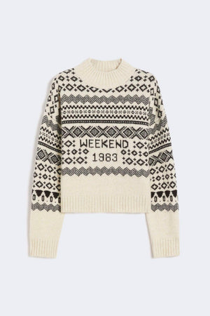 Il maglione fantasia Max Mara Weekend Brioso1234 si distingue per il suo volume oversize e la lavorazione jacquard di ispirazione nordica, perfetto per creare atmosfere invernali raffinate. Realizzato in filato misto lana e alpaca, presenta un collo montante e maniche lunghe a giro basso che garantiscono comfort e stile. I bordi rifiniti a costine aggiungono un tocco di precisione sartoriale. Il volume boxy assicura una vestibilità avvolgente e moderna, ideale per chi cerca un capo elegante e comodo durante la stagione delle feste.
