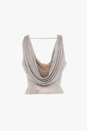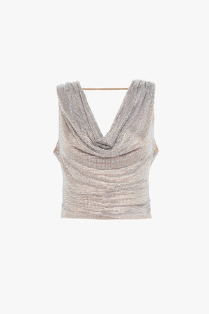 Il top crop argentato di Giuseppe di Morabito presenta un ampio drappo sia sul fronte che sul retro, creando un effetto fluido e sofisticato. Con una vestibilità regular fit, questo capo unisce stile e comfort, perfezionato da una composizione di 82% poliammide e 18% elastan che garantisce elasticità e resistenza. La tonalità cammello aggiunge un tocco caldo e versatile, ideale per look contemporanei e distintivi.