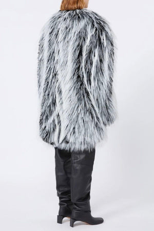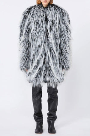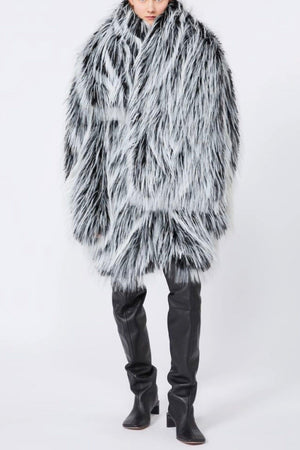 La giacca Sportmax Adesso1234 combina un volume oversize e un bicolore deciso in un tessuto effetto furry, arricchito da dettagli in tessuto spalmato per un contrasto elegante. La chiusura con ganci metallici ispirati alla gioielleria valorizza il collo con fascetta, mentre le tasche laterali a filetto con bordo in tessuto spalmato aggiungono funzionalità e stile. La fodera interna in raso assicura comfort, rendendo questa giacca un capo sofisticato e di carattere dalla vestibilità regolare.