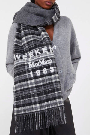 La Sciarpa donna Max Mara Weekend Pagella è realizzata in filato di mista lana, garantendo comfort e calore ideale. Presenta un raffinato disegno jacquard con lettering Weekend Max Mara 1983 sul fondo, che dona un tocco distintivo e contemporaneo. I lati corti sono rifiniti con motivo a frange, aggiungendo dettaglio e movimento al capo. Con dimensioni di 167 x 40 cm, questa sciarpa unisce praticità ed eleganza per completare qualsiasi look con carattere.