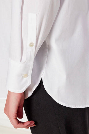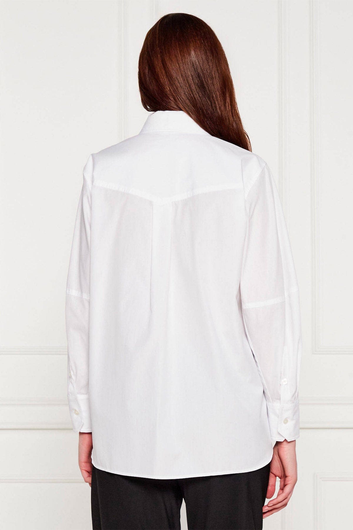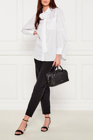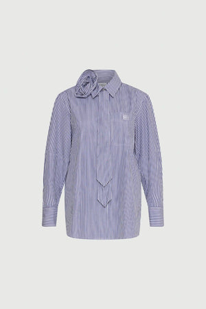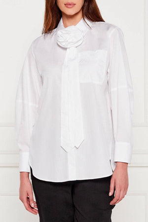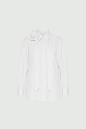 La camicia in popeline di puro cotone unisce sofisticazione e comodità con un fit dritto e un volume oversize che valorizza la silhouette. Il collo a camicia e le spalle leggermente scese definiscono un design ricercato, mentre l’abbottonatura nascosta con primo bottone a vista conferisce un dettaglio elegante. Completa il look il nastro cravatta sagomato con fiore tessile abbinato, versatile da indossare al collo, in vita o al polso per uno stComposizione 100% cotone. Lavaggio In lavatrice max 30 gradi ridotta azione meccanica; non candeggiare; non asciugare in tamburo; asciugare appeso in ombra; ferro tiepido max 120 gradi c; lavare a secco delicato con percloroetilene.; contiene parti non tessili di origine animale.ile personalizzabile e distintivo.