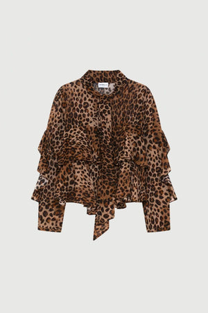 La camicia Marella Gala unisce leggerezza e carattere grazie al tessuto in georgette di viscosa stampata, proveniente da materie prime sostenibili. Il fit dritto valorizza la silhouette, mentre il collo con sciarpina da annodare aggiunge un dettaglio raffinato. Le balze asimmetriche sul busto—due davanti e tre sul retro—insieme ai volant lungo la manica conferiscono movimento e originalità. Perfetta da abbinare ai denim, questa camicia è una scelta versatile per un look urbano e distintivo.