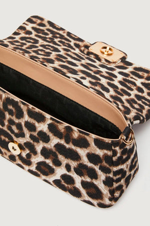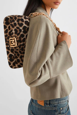 La borsa Leopardata donna Marella Emily3 della collezione Le Muse combina un design iconico con una funzionalità pensata per l’eleganza moderna. Realizzata in tessuto maculato leggermente imbottito, presenta un manico intrecciato con catena in metallo e una tracolla lunga rimovibile per portarla a mano o cross body. La chiusura a patta con calamita e placca logata assicura sicurezza e stile, mentre la fodera personalizzata completa un accessorio versatile e raffinato, ideale per chi desidera un dettaglio sofisticato senza rinunciare alla praticità. Dimensioni compatte: 27 x 7 x 13,5 cm.