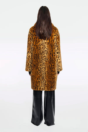 Pelliccia ecologica donna leopardata Stand Studio Camille25, realizzata in morbido e lussuoso eco-fur con silhouette a cocoon che valorizza ogni occasione. Caratterizzata da spalle scese, collo a rever e chiusura frontale con bottoni a pressione nascosti. Dispone di tasche laterali con spacco e tasca interna con zip per la massima praticità. Composizione 100% poliestere con fodera in poliestere. Si consiglia la pulizia professionale a secco. La vestibilità è ampia; per taglie intermedie, si raccomanda di scegliere la taglia inferiore.
