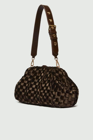 Questa pochette in velluto intrecciato unisce eleganza e funzionalità, ideale per le tue occasioni più raffinate. Il comparto interno foderato on tone include una tasca con zip e uno scomparto porta tessere, garantendo ordine e praticità. La chiusura con frame metallico rivestito e magnete assicura sicurezza, mentre la tracolla regolabile e rimovibile offre versatilità d’uso. Le dimensioni compatte di 32 x 13 x 17 cm la rendono perfetta da abbinare sia a cappotti tono su tono sia a look dal contrasto cromatico deciso.