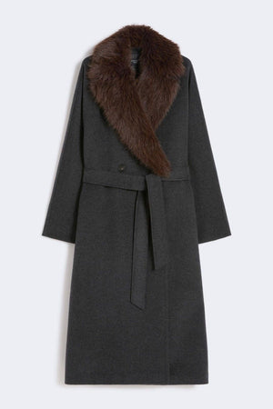 Il cappotto midi Max Mara Weekend Cacio1234 unisce eleganza e artigianalità con il suo tessuto double in mista lana cucito a mano. La linea dritta e il taglio a vestaglia con collo rimovibile in texture morbida assicurano versatilità e comfort. Dettagli come il collo a rever ampio, le maniche a kimono, la chiusura doppiopetto con cintura e le tasche laterali conferiscono un tocco di raffinatezza funzionale. Foderato e rifinito con puntino sartoriale, è la scelta ideale per un look sofisticato nelle atmosfere invernali.