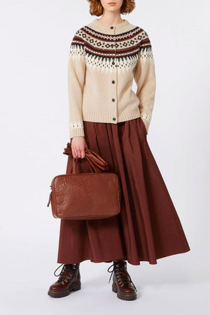 La gonna lunga Max Mara Weekend Bruno1234 si distingue per il suo volume ampio e il motivo arricciato che dona dinamismo e struttura. Realizzata in taffetà di misto cotone, propone una linea svasata valorizzata da una vita elasticizzata per un comfort ottimale. Pratica e funzionale, è dotata di tasche inserite nei fianchi. Non foderata, questa gonna è un pezzo versatile che interpreta con eleganza le atmosfere invernali e i rituali di stile delle feste.