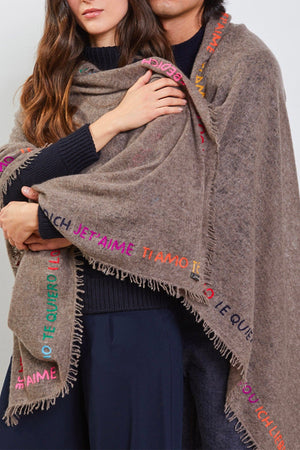 La sciarpa Faliero Sarti Te Quiero, realizzata in puro cashmere, presenta un design classico rettangolare impreziosito da ricami multi-color lungo i bordi. Questi dettagli delicati celebrano l’amore, aggiungendo un tocco raffinato e personale a un accessorio intramontabile, ideale per chi cerca eleganza e calore in ogni occasione.