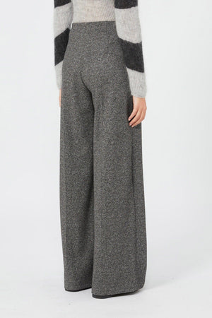 I pantaloni in jersey donna Max Mara MM Cali sono realizzati in viscosa stretch per garantire comfort e libertà di movimento. La gamba larga, leggermente svasata sul fondo, crea un effetto fluido ed elegante. Le profonde pieghe stirate sul davanti, che si attenuano verso il fondo, aggiungono struttura e sofisticatezza al design. La chiusura con zip coperta e bottone in corno completa un capo raffinato e funzionale, ideale per un guardaroba contemporaneo.