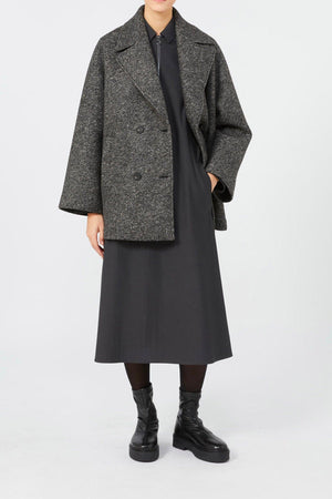 Il caban donna Max Mara MM Obliqua si caratterizza per una silhouette rilassata e una linea cocoon, realizzato in doppio jersey armaturato di mista lana per calore e struttura. L’ampio collo a rever e le maniche raglan a campana sul fondo conferiscono eleganza e comfort. La chiusura con bottoni in corno e le tasche a filettone sui fianchi valorizzano il design, completato da un piccolo taglio sprone sul retro. Foderato internamente, questo cappotto unisce funzionalità e stile senza tempo.