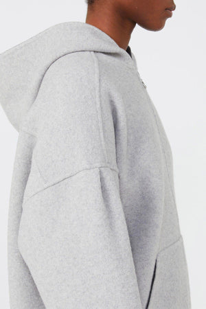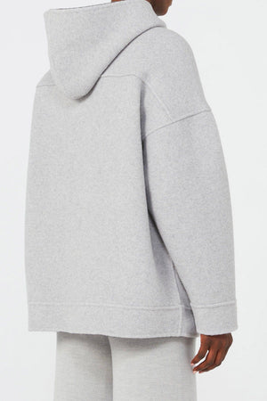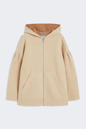 Il giaccone in jersey donna Max Mara MM Sottile presenta una vestibilità oversize con linea cocoon, realizzato in jersey double di mista lana con interno a contrasto per un comfort superiore. Le pieghe montate sul giromanica basso donano una struttura morbida e avvolgente. La chiusura frontale con zip e le tasche marsupio offrono praticità, mentre il taglio sprone sul retro aggiunge un dettaglio distintivo. Le finiture, lavorate a mano in double, sottolineano l’attenzione artigianale e la qualità del capo.
