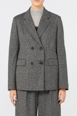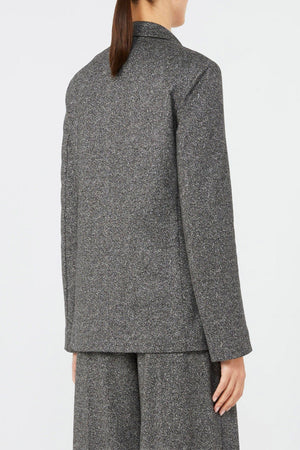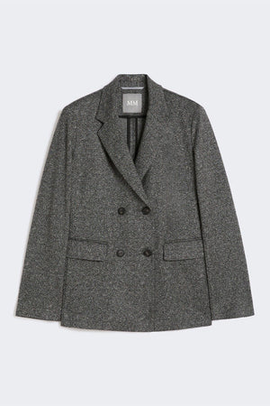 La giacca in jersey donna Max Mara MM Albania è un blazer doppiopetto realizzato in jacquard di viscosa stretch, che unisce eleganza e comfort. La costruzione sartoriale interamente sfoderata garantisce leggerezza e vestibilità naturale. La linea dritta, il collo a rever e le maniche lunghe a giro definiscono una silhouette raffinata, mentre la chiusura con bottoni in corno e le tasche a filetto con patta sul davanti completano il design con dettagli sofisticati.