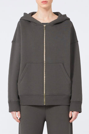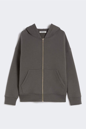 Felpa con cappuccio in jersey di cotone garzato, caratterizzata da una vestibilità regular e da un piccolo logo ricamato sul polso sinistro. Presenta maniche lunghe a giro basso, chiusura con zip e pratiche tasche marsupio sul davanti. Polsi e bordo a costine completano il design, con una composizione di 88% cotone, 8% poliammide e 4% elastan per comfort e durata. Facile da curare seguendo le indicazioni di lavaggio delicate, è perfetta per un look casual e curato.