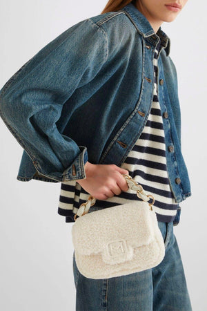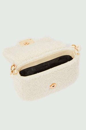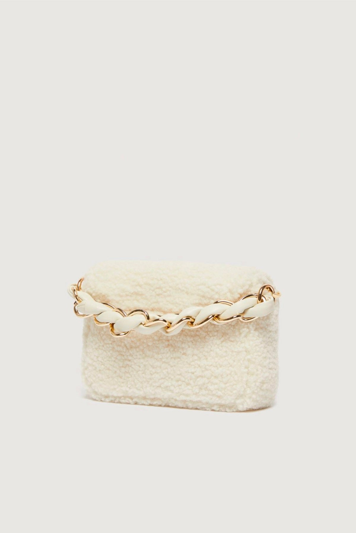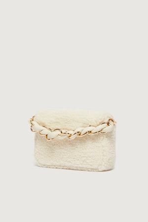 La borsa panna Teddy Marella Lontra2 della collezione Le Muse unisce design iconico e praticità. Realizzata in tessuto furry leggermente imbottito, presenta un manico intrecciato con catena in metallo e una fodera personalizzata. Versatile, può essere portata sia a mano che a tracolla grazie alla cinghia lunga rimovibile. La chiusura a patta con calamita e placca logata garantisce sicurezza e stile. Dimensioni compatte di 17,5 x 5,5 x 11,5 cm per un accessorio elegante e funzionale.
