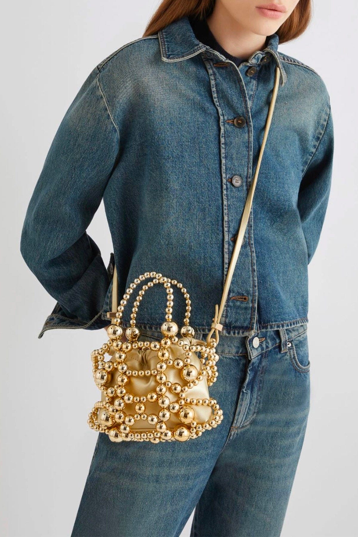 Compatta ma elegante, la borsa a rete Marella Bobby unisce design raffinato e funzionalità. La struttura a secchiello presenta una gabbia esterna con boule perlati di due dimensioni che valorizzano il look, mentre l’interno ospita una pratica pouch in tessuto spalmato con coulisse, ideale per contenere l’essenziale. Completa il design la tracolla rimovibile, perfetta per adattarsi a ogni occasione. Dimensioni contenute (22 x 3 x 16 cm) per un accessorio cComposizione Borsa in acrilonitrile butadiene stirene (abs); con interno staccabile poliestere con spalmatura in poliuretano; fodera in 100%poliestere.he coniuga stile e praticità.
