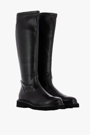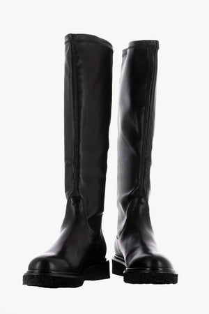 Lo stivale alto donna Kobe di Guglielmo Rotta combina eleganza e funzionalità, grazie alla nappa nera di alta qualità e al gambale in nappa sintetica stretch che garantisce un fit avvolgente e comfort per tutto il giorno. La suola in Rubrex extra light assicura leggerezza e praticità d’uso quotidiano. Made in Italy, rappresenta l’eccellenza artigianale unita a un design contemporaneo e distintivo.