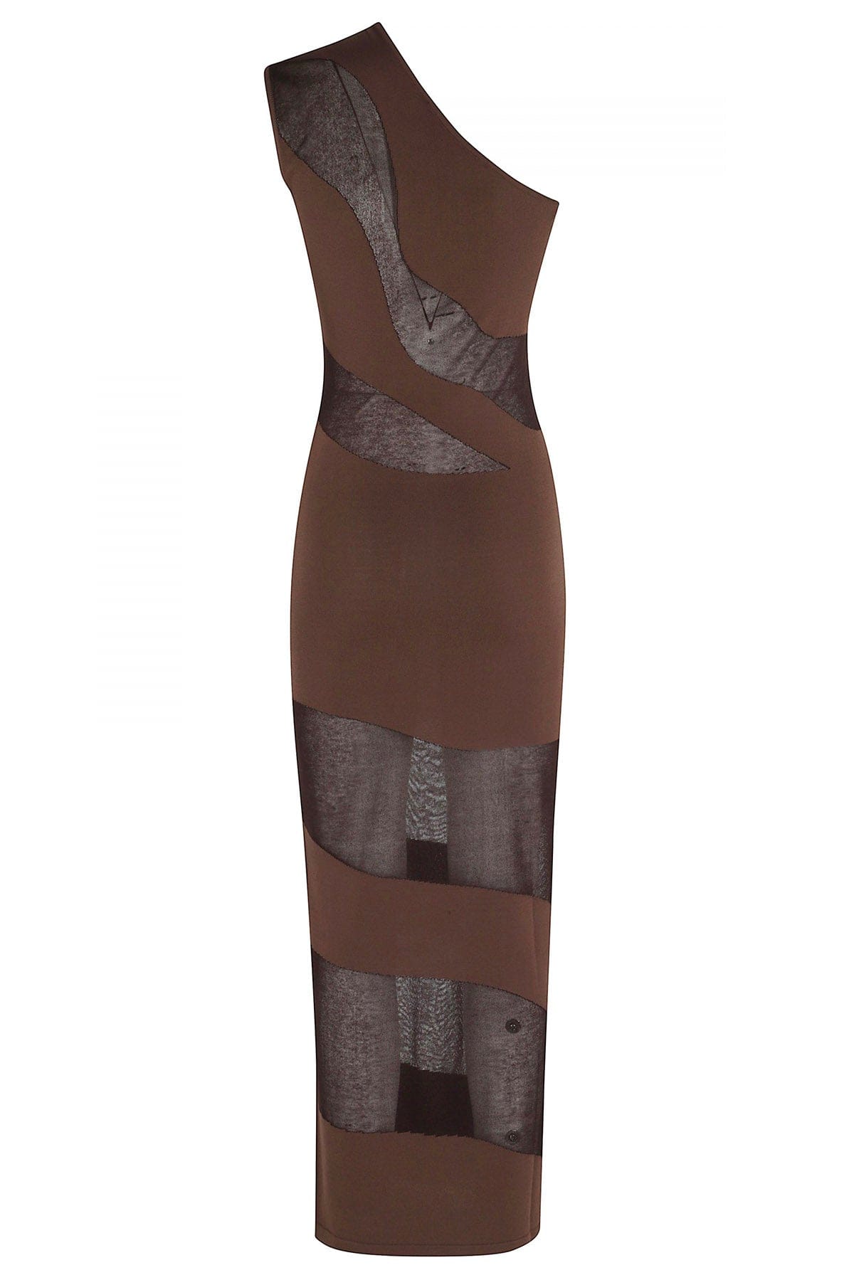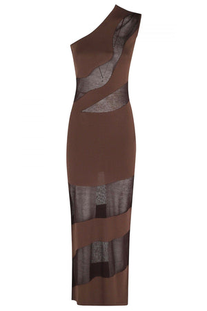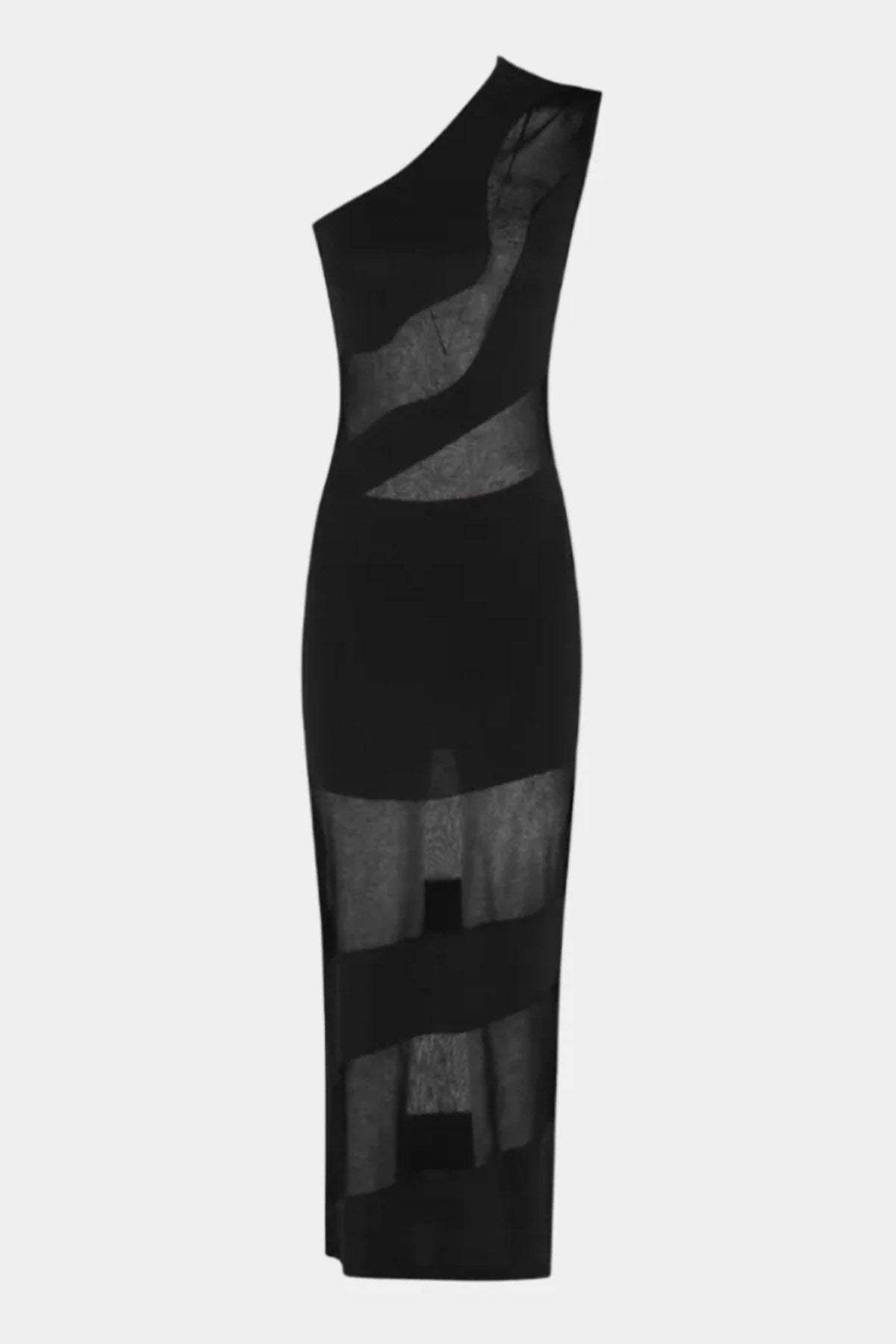 Abito lungo monospalla firmato Federica Tosi che unisce eleganza e modernità. Il design asimmetrico con spalla singola crea una silhouette sofisticata e contemporanea, mentre gli inserti in tessuto semi trasparente aggiungono movimento e sensualità al capo. Perfetto per occasioni speciali, questo pezzo rappresenta l'eccellenza della moda italiana con dettagli ricercati e una costruzione impeccabile. Un'opzione versatile che valorizza la figura con stile e raffinatezza.