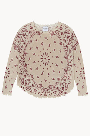 Maglia in cashmere puro con collo rotondo e stampa bandana Bico. Realizzata in 100% cashmere lavorato a maglia jersey a 2 fili, garantisce morbidezza e leggerezza eccezionali. La silhouette dritta offre una vestibilità comoda e versatile, perfetta per creare look sofisticati sia in abbinamenti casual che più formali. Un capo essenziale che unisce qualità artigianale e eleganza senza tempo.