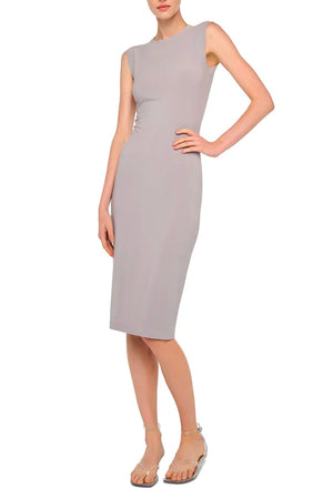 Questo abito senza maniche incarna la raffinatezza attraverso la semplicità costruttiva. Il girocollo essenziale crea una linea pulita e versatile, mentre la vestibilità aderente segue le curve del corpo con precisione elegante. Tagliato fino al ginocchio, il capo offre proporzioni sofisticate adatte a molteplici contesti, dalla quotidianità agli eventi più formali. Lo spacco posteriore garantisce libertà di movimento senza compromettere l'estetica minimalista del design. L'assenza di maniche esalta la spalla e consente abbinamenti versatili con blazer, cardigan o accessori statement. Realizzato con attenzione ai dettagli costruttivi, questo pezzo fondamentale si rivela un investimento stilistico duraturo, perfetto per chi ricerca un'eleganza sobria e senza tempo che trascende le fluttuazioni delle tendenze stagionali.