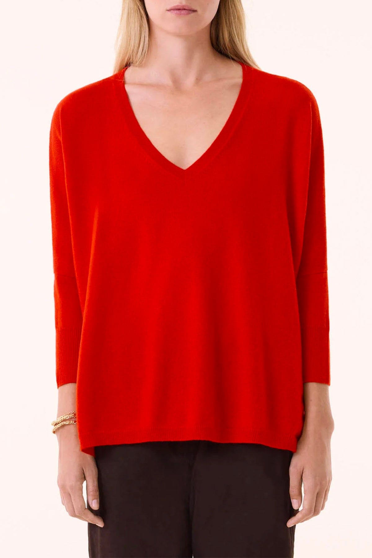 Pullover in puro cashmire con una silhouette oversize che incarna l'eleganza senza sforzo. Realizzato con un pregiato filato a due capi in maglia jersey dégauchie, garantisce morbidezza e leggerezza eccezionali. Le proporzioni generose—63 cm di lunghezza e 97 cm di larghezza—offrono comfort e versatilità stilistica. Le maniche corte da 17 cm completano un design contemporaneo e raffinato, perfetto per chi apprezza la qualità artigianale e il lusso consapevole.