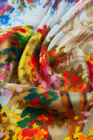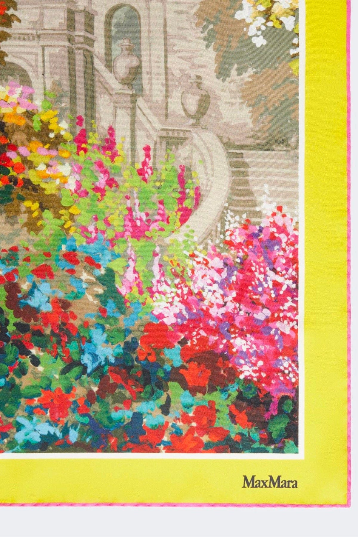 Foulard quadrato in pura seta twill lavata, caratterizzato da un esclusivo motivo di collezione stampato all over. Realizzato con bordi finemente cuciti e impreziosito dal logo Max Mara stampato a contrasto sull'angolo. Le dimensioni generose di 70 x 70 cm lo rendono versatile per essere indossato al collo, come accessorio per capelli o come elemento decorativo. Un pezzo di lusso che combina artigianalità italiana e raffinatezza senza tempo.