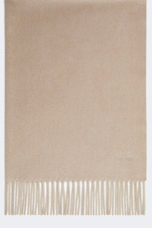 Stola in puro cashmere zibellinato dal design minimalista e raffinato. Caratterizzata da un elegante ricamo che riproduce il lettering Max Mara nelle medesime tonalità, conferendo un tocco di sofisticatezza discreta. Le frange sui lati corti aggiungono movimento e fluidità. Dimensioni generose: 70 x 196 cm, ideale per avvolgere le spalle con stile e calore. Un accessorio versatile che unisce qualità artigianale e eleganza senza tempo.