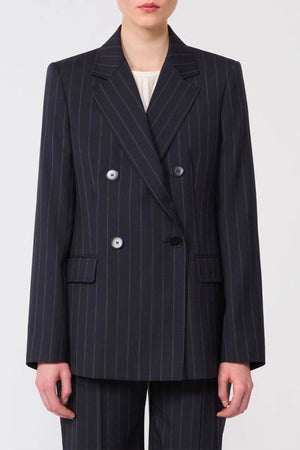 Una giacca doppiopetto che incarna l'essenza della sartoria italiana contemporanea. Realizzata in pura lana gessata, offre una struttura impeccabile con una silhouette leggermente sfiancata che valorizza la figura. Il collo a rever e i bottoni a vista conferiscono carattere e personalità al capo. Le maniche a giro con bottoni sul fondo aggiungono dettagli raffinati, mentre lo spacco posteriore garantisce libertà di movimento. Le tasche a filetto con patta applicata mantengono le proporzioni eleganti. La fodera interna rifinita con puntino sartoriale testimonia la qualità costruttiva. Un pezzo versatile che si adatta a contesti professionali e occasioni più formali, perfetto per chi apprezza l'artigianalità e la precisione nel design.