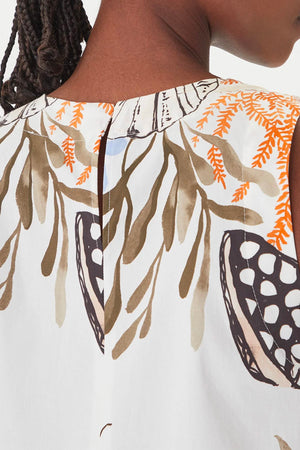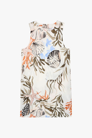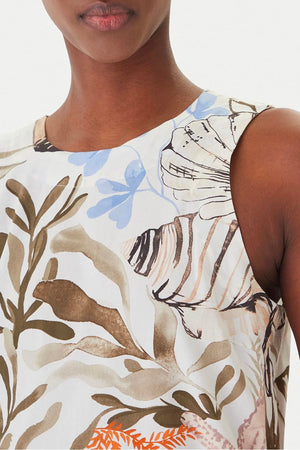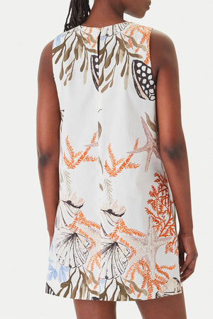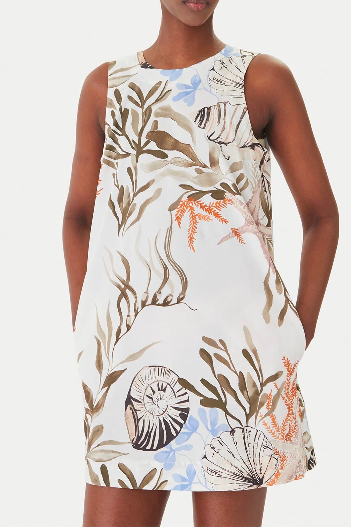 La fresca stampa estiva è un invito alla leggerezza: su questo abito smanicato gioca con coralli e conchiglie per una voglia di mare che ci accompagna tutto l'anno. Tessuto principale contenente cotone biologico, fibra ricavata dalla coltivazione biologica della pianta del cotone. Abito in popeline di cotone stretch con fit regolare. Scollo stondato con goccia sul retro, modello smanicato con tasche laterali inserite per praticità e stile.