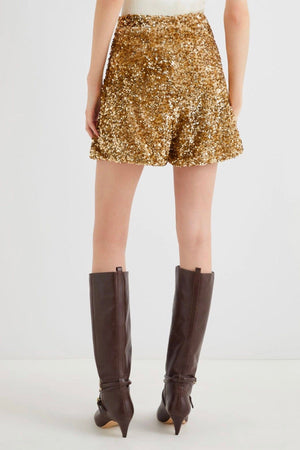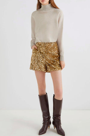 Pantaloni corti tesoro Marella per donna in jersey, decorati con paillettes luccicanti che conferiscono un tocco glamour ad ogni look estivo. Sono comodi e versatili, perfetti per un'occasione informale o una serata elegante. Aggiungi una nota di stile al tuo guardaroba con questi pantaloncini alla moda.