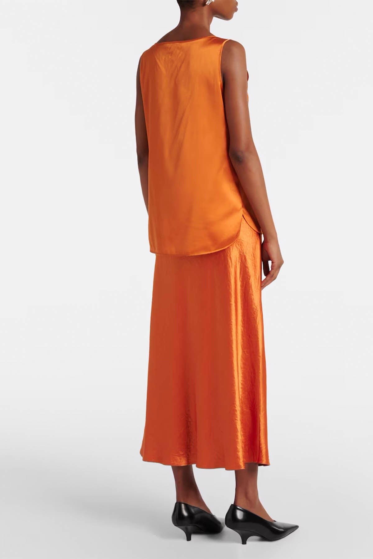 La Canotta in Seta Max Mara Leisure Pan è un elegante top smanicato realizzato in pregiato raso di seta stretch. Con ampio scollo a giro, spalline larghe e fondo asimmetrico leggermente più lungo sul retro con spacchi laterali stondati, questa canotta offre una linea fluida e confortevole. Ideale per un look sofisticato e alla moda.
